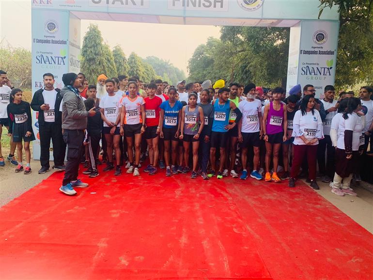 The IT experts run from Chandigarh club to Sukhna lake on Saturday morning for better health. Representatives of many IT companies participated in the program. About one thousand officers and employees participated in it.
