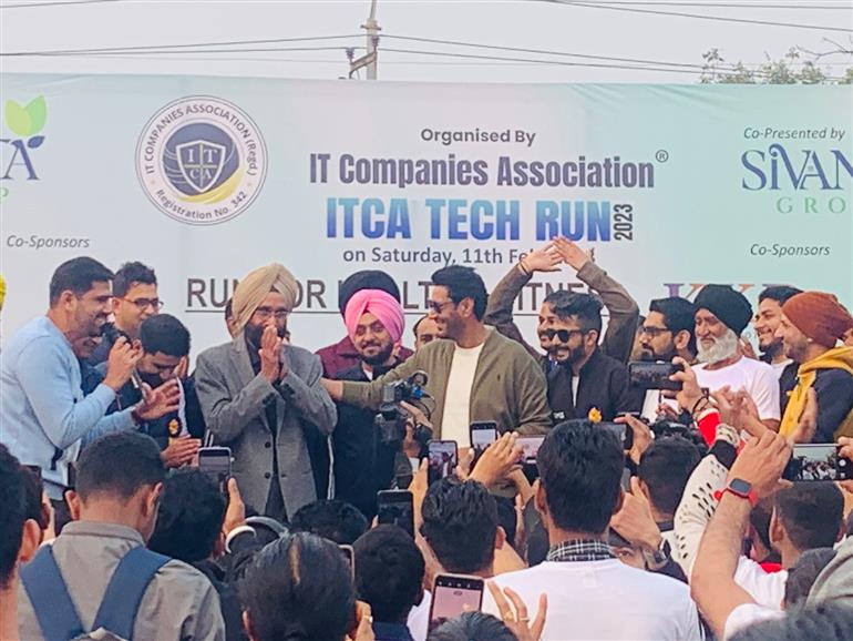 Singer Harbhajan Mann also reached ITCA Tech Run- 2023 organised in collaboration with IT company association to boost the morale of the people. He enthralled the people with his songs.