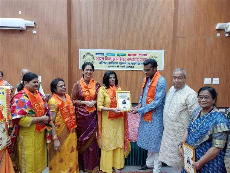 Chandigarh: Bharat Vikas Parishad, Chandigarh Province organized a colorful program "An Evening in the Name of Senior Women" on the occasion of "International Women's Day". On this occasion, 5 distinguished senior citizen women were also honored. Chandigarh Municipal Corporation Mayor Anoop Gupta was the chief guest on the occasion. While Mrs. Priya Tandon graced the event as a special guest.