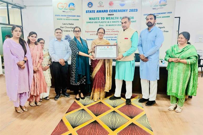 Chandigarh: Sri Guru Gobind Singh College, Sector 26 Chandigarh, has been honored with the State Award 2023 for its exceptional management of Single Use Plastic and E-Waste. The award was presented under the Mission Waste to Wealth initiative, which was organized by Swarmani Youth Welfare Association UT, Chandigarh in collaboration with the Department of Environment, Chandigarh Administration, Chandigarh Pollution Control Committee, and Education Department, Chandigarh Administration. SGGSC was ranked second among all colleges in the region for its remarkable waste management practices.